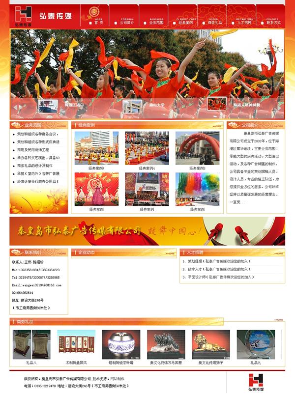 秦皇島市弘泰廣告?zhèn)髅接邢薰境闪⒂?002年,位于海港區(qū)繁華地段,主要業(yè)務(wù)范圍:承攬大型的慶典活動,大型演出活動,及各種廣告牌匾的制作。公司具備專業(yè)的策劃撰稿人員,設(shè)計人員,專業(yè)的施工隊伍,為您提供全方位的服務(wù)。公司始終堅持以質(zhì)量謀發(fā)展的經(jīng)營理念,一直受到合作單位的信賴與好評。成功舉辦過“全國首屆校園歌手電視大賽”,“廣場音樂會”,“08年奧運會海上安保演習(xí)”,“新天地購物廣場開業(yè)”等大型活動。