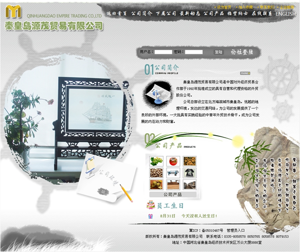 公司總部設(shè)立在北方海濱城市秦皇島。優(yōu)越的地理環(huán)境,發(fā)達(dá)的交通網(wǎng)絡(luò),為公司的發(fā)展提供了一個(gè)良好的外部環(huán)境。一大批具有實(shí)踐經(jīng)驗(yàn)的中青年外貿(mào)技術(shù)骨干,成為公司發(fā)展的內(nèi)在動(dòng)力和財(cái)富。