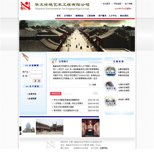 秦皇島華文環(huán)境藝術(shù)工程有限公司(以下簡稱:華文公司),成立于 2000 年,是經(jīng)秦皇島市工商行政管理局批準(zhǔn)成立的一家具有專業(yè)資質(zhì)等級的公司,注冊資本為人民幣壹仟萬元。并且公司已通過了ISO9001認(rèn)證。良性的企業(yè)機(jī)制使華文公司具備人才、資本管理等綜合優(yōu)勢。在仿古建筑、園林景觀、裝飾裝修、書畫布置等多方面的綜合承接能力突出。